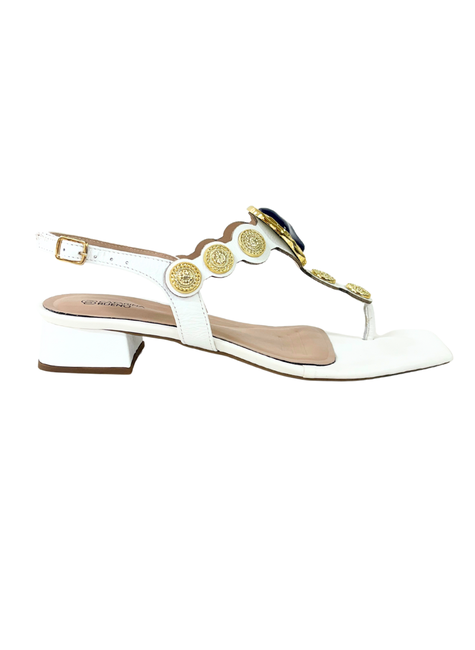 Sandália em Couro com Tira Entre os Dedos e Aplicação
