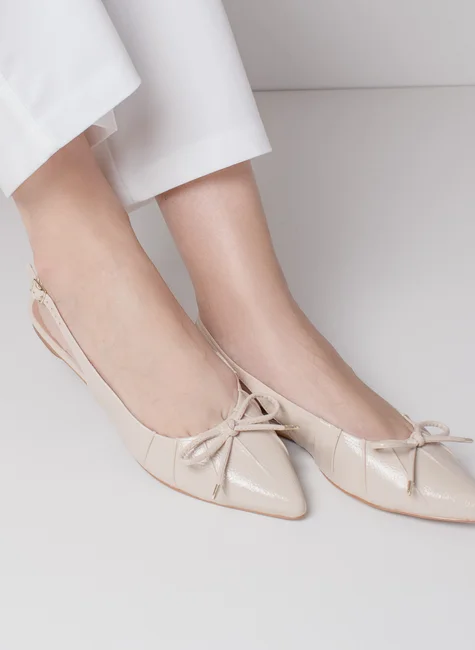 Sapatilha Slingback Bico Fino com Laço Delicado
