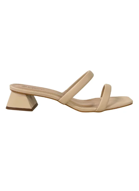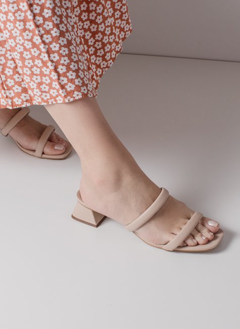 Tamanco com duas tiras sobre o peito do pé.