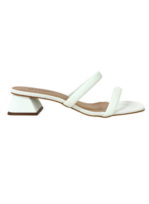 Tamanco com duas tiras sobre o peito do pé.